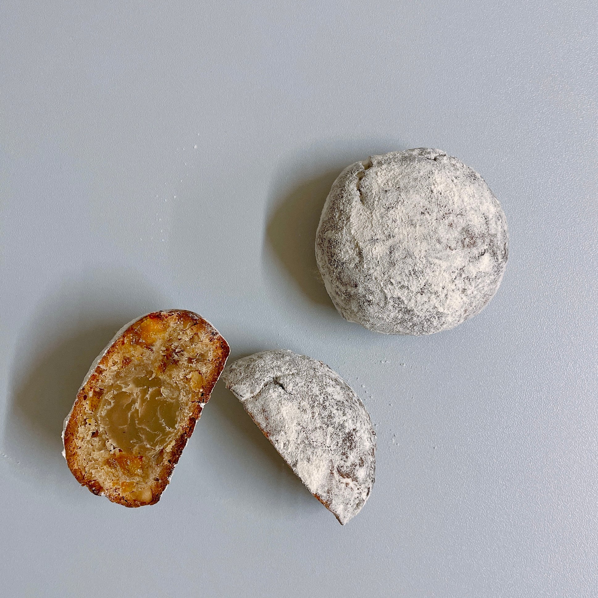 そば粉と米粉を使用した生地に自家製ゆずピール、ナッツをたっぷり混ぜ込んだ手のひらサイズのシュトレン2個セットです。中には和栗あんを包み込みました。