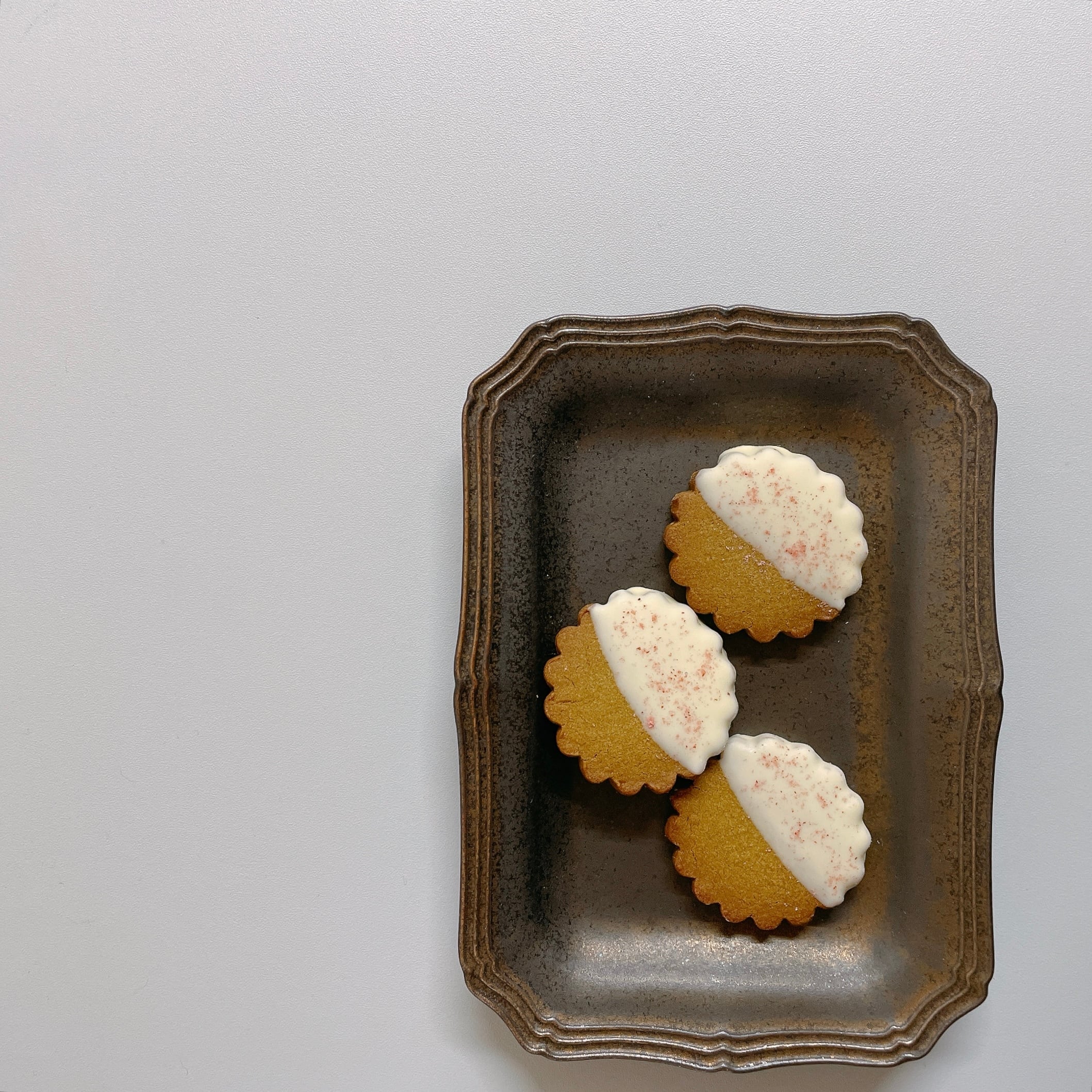 桜葉と抹茶のクッキーにホワイトチョコレートと桜パウダーをトッピングしました